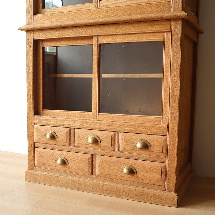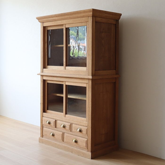 アンティーク ゆらゆら ガラス引戸 タンス 飾り棚 ナラ クリ 無垢材