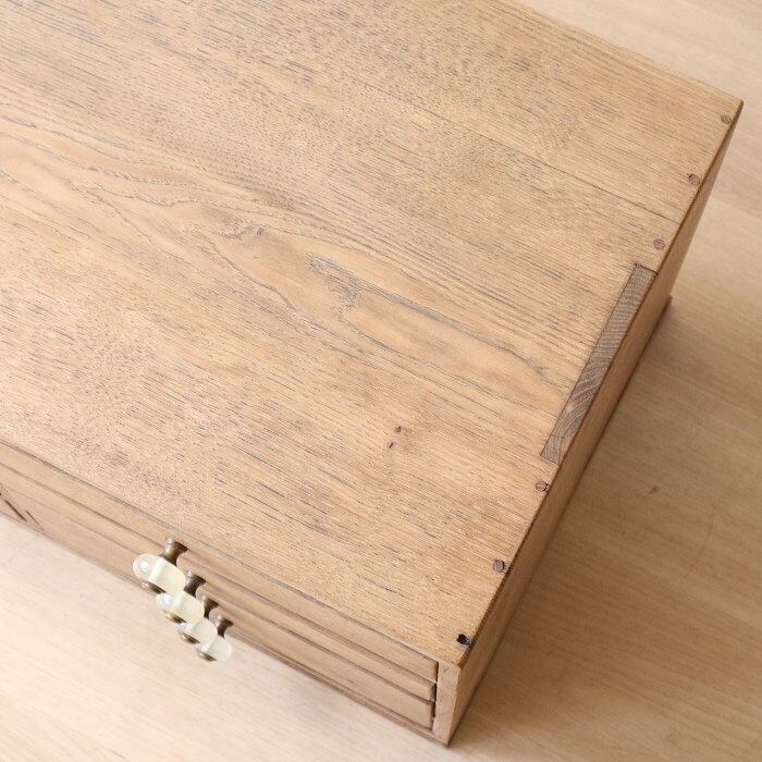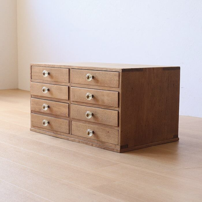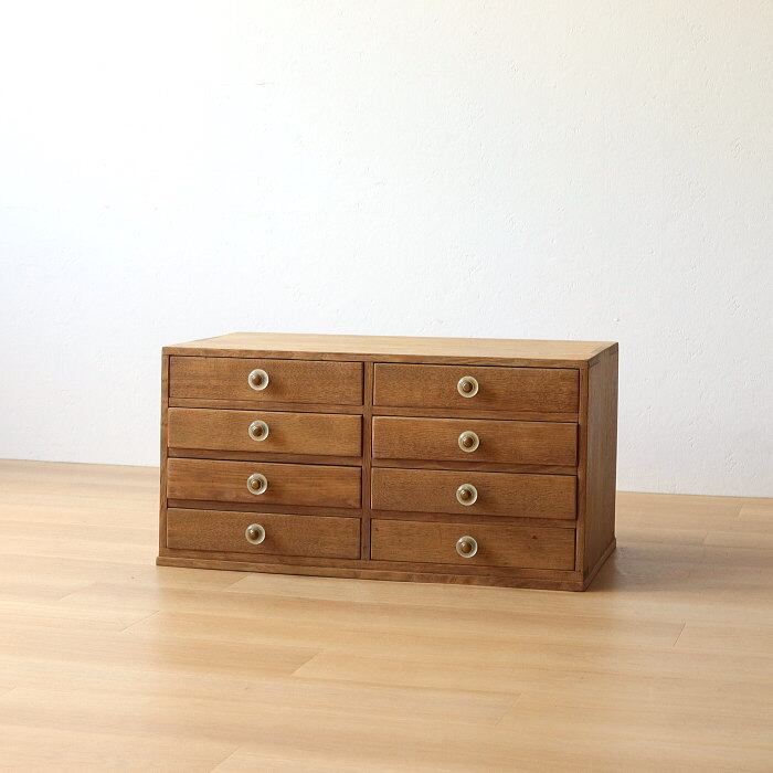 アンティーク 2列整理箱 タンス 古家具 真鍮金具 引き出し8杯 無塗装
