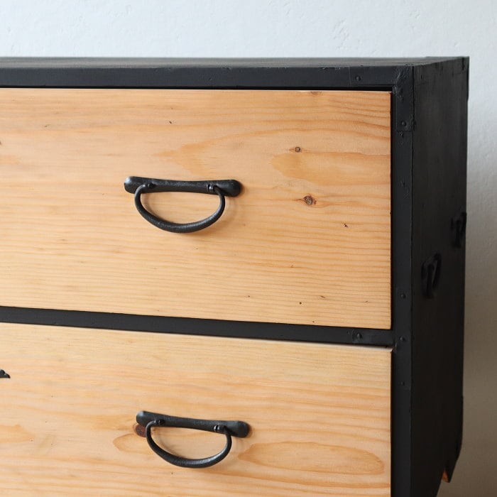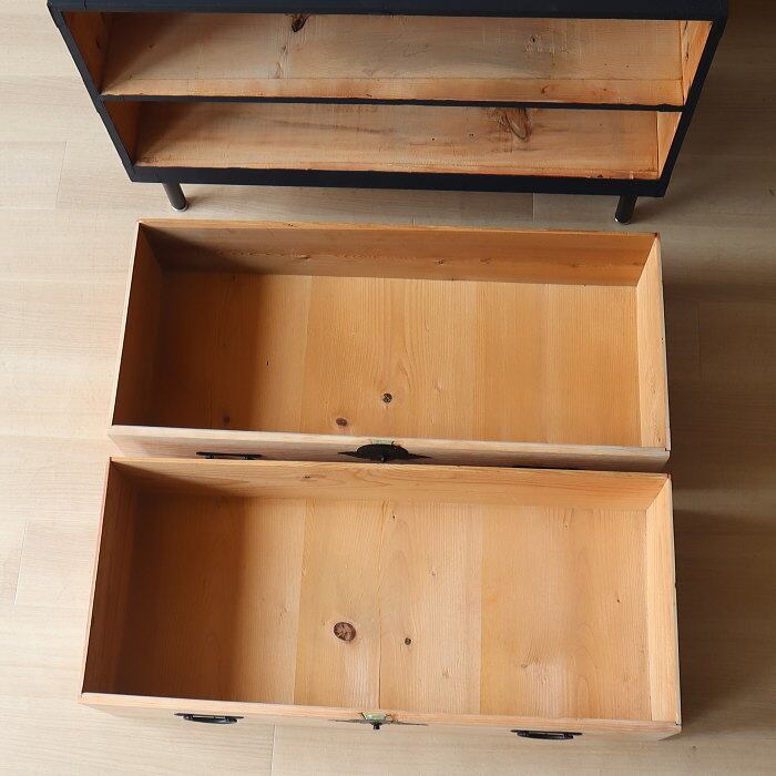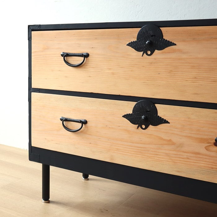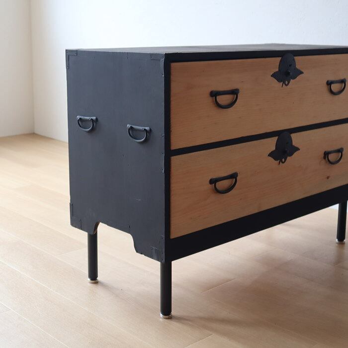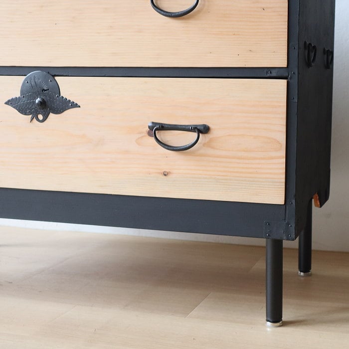 アンティーク 引出し2杯 スギ 無垢材 チェスト 鉄脚 古家具 リノベーション