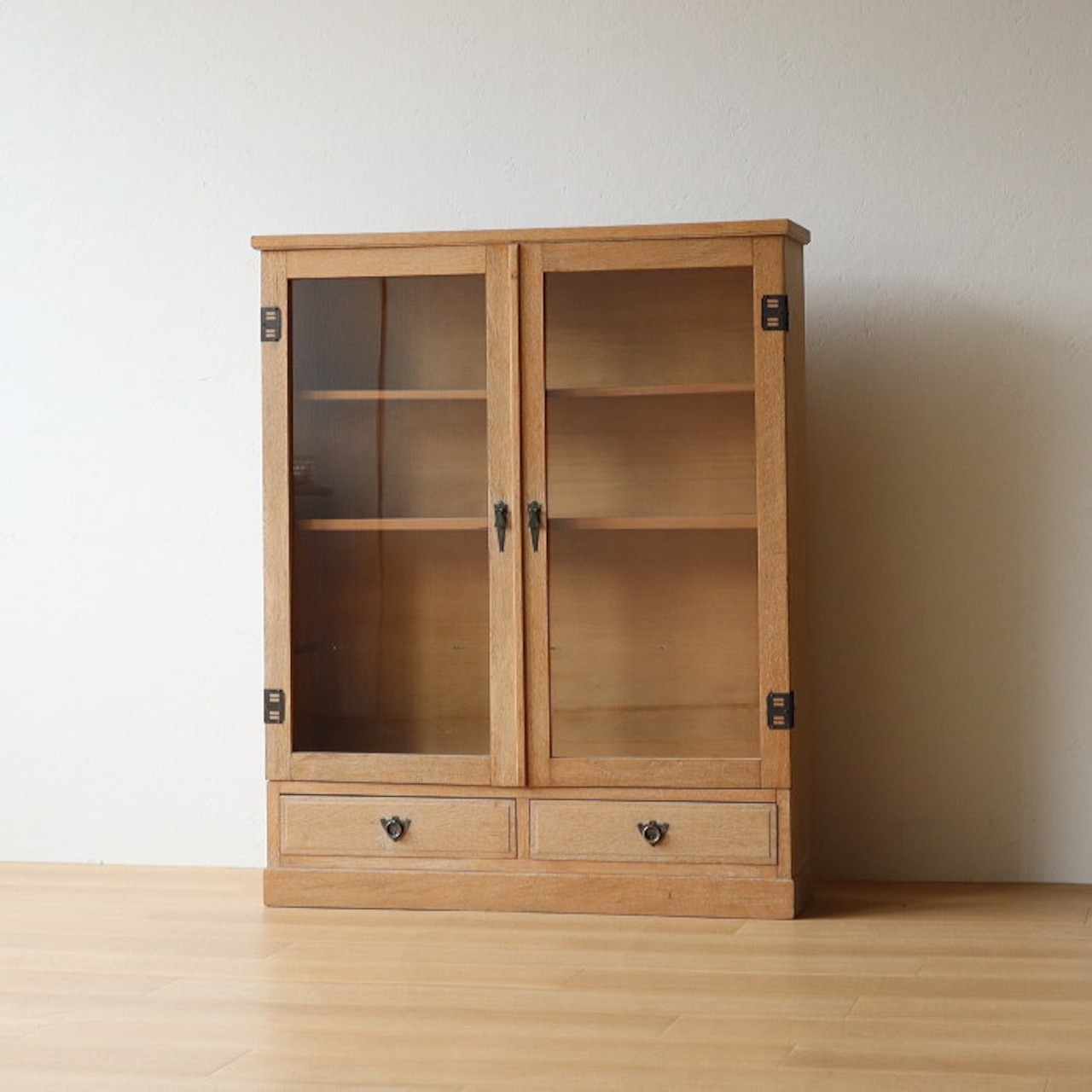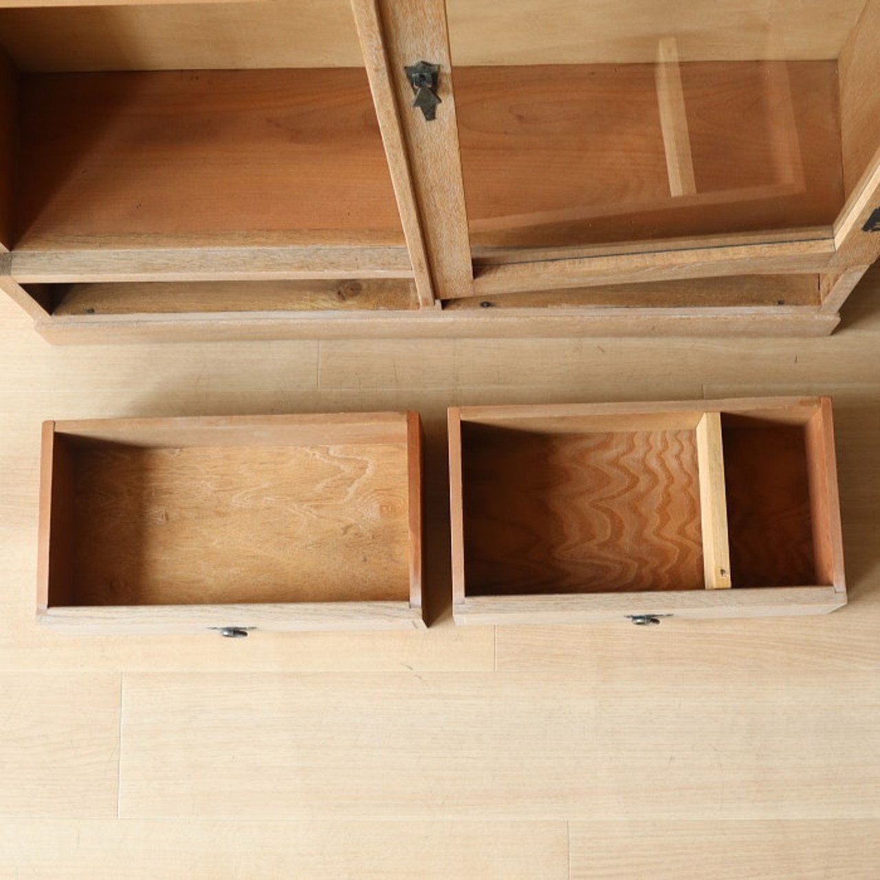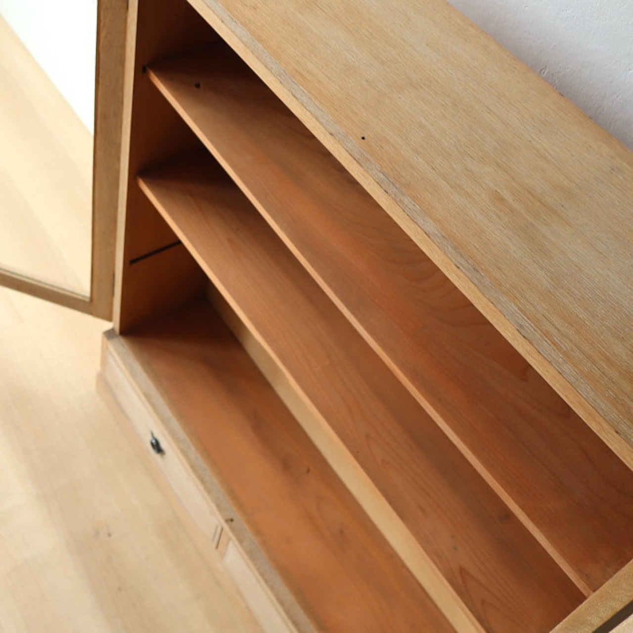 ガラス開き書棚のご紹介です。材質主材はナラ材でその他色々な木々が使われています。届いてすぐにお使いできるようにメンテナンス、補修修復してあります。奥行きが浅く使いやすいいサイズ感です。剥離無塗装でナチュラルな感じがとても雰囲気があります。オブジェや店舗什器としてもお使いいただけます。あなたのライフスタイルにあった使い方でアンティークを是非楽しんでみてください。