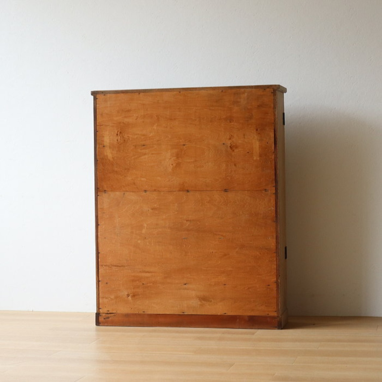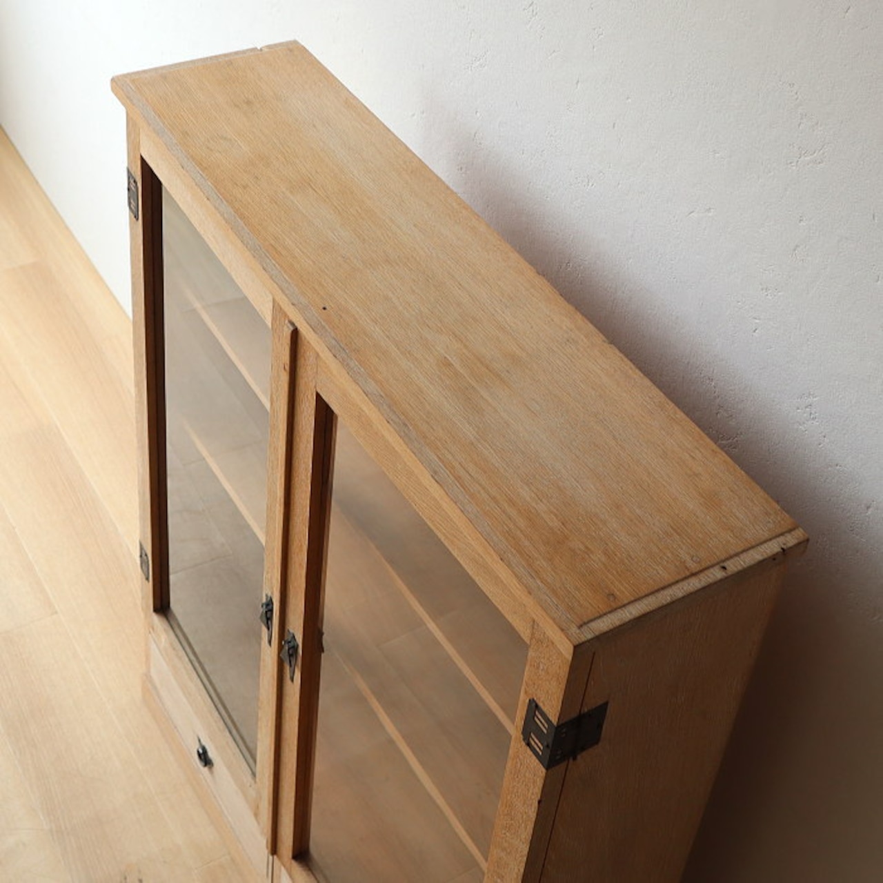 アンティーク ナラ 無垢材 ガラス開き 書棚 古家具 剥離 レトロ