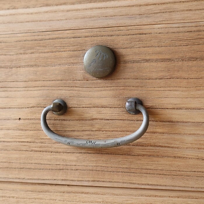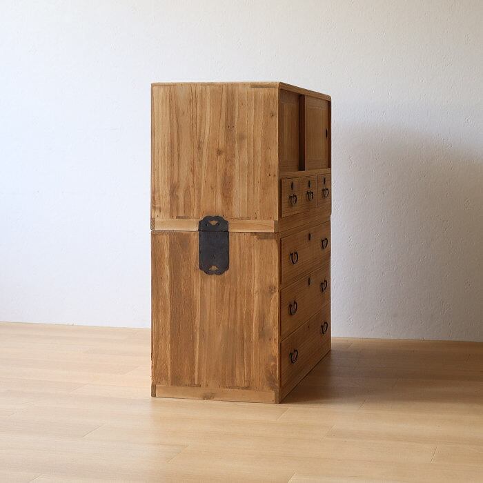 小ぶりで可愛らしい和箪笥のご紹介です。幅も狭く形もシンプルで色々なシーンで使えそうです。本体はスギ材、前面は桐材です。その他補修修復しており届いてすぐにお使いいただます。2段に分けることができるのでテレビ台やオブジェ、店舗什器としてもお使いいただけます。あなたのライフスタイルにあった使い方でアンティークを是非楽しんでみてください。