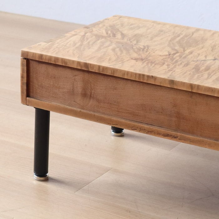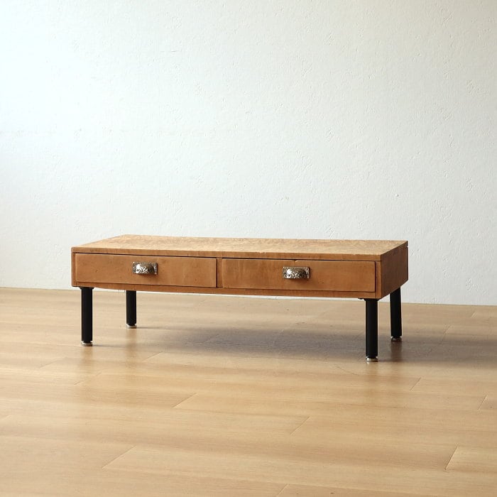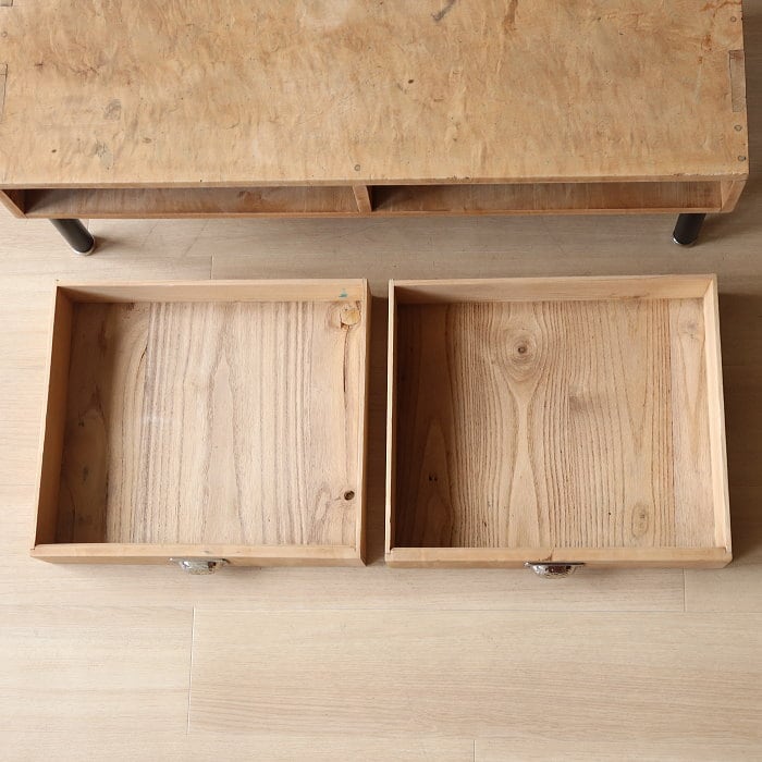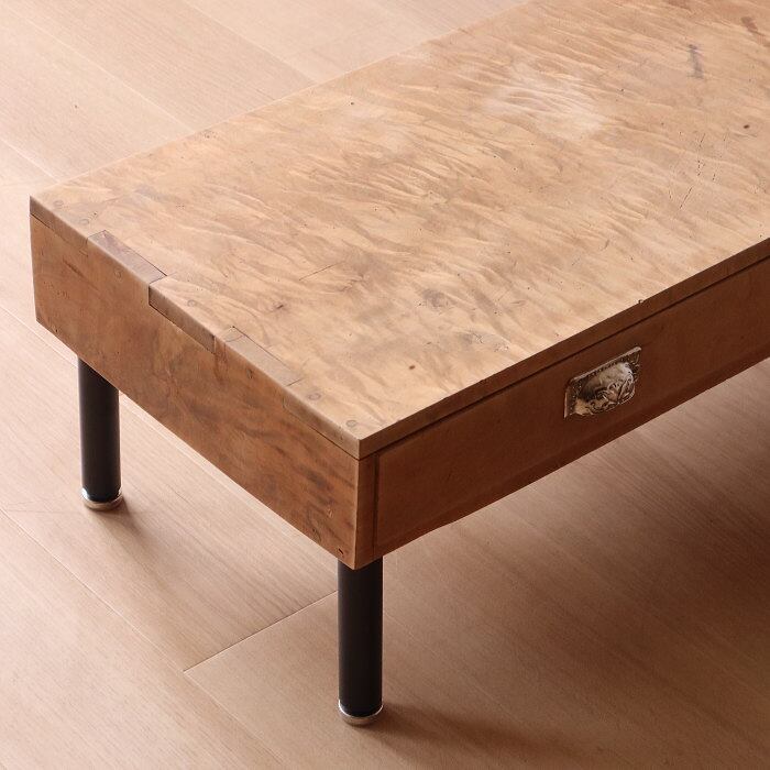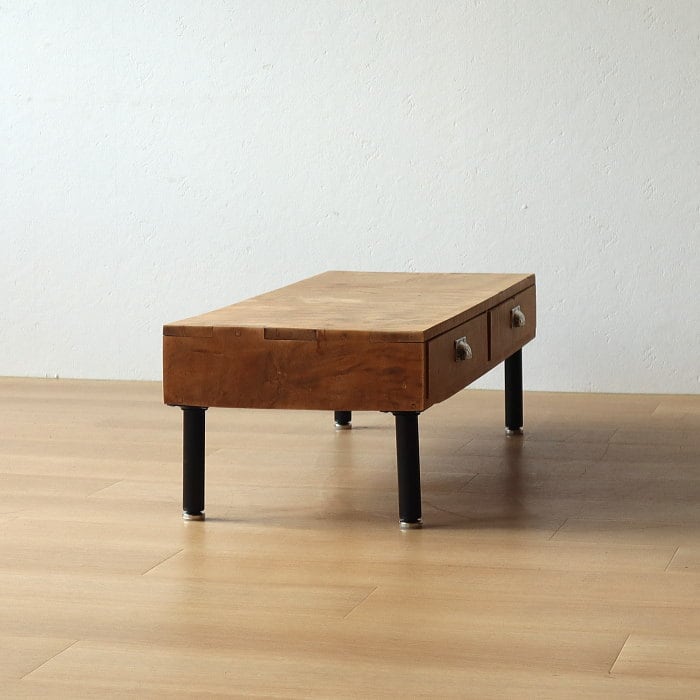 アンティークの文机を鉄脚をつけたローテーブルにしました。本体はトチ無垢材でその他、キリ、スギを使用しているテーブルです。無塗装で補修修復してあるので届いてすぐに安心してお使いいただけます。センターテーブルやテレビ台など色々な使い方ができそうです。あなたのライフスタイルに合わせて素敵にお使いください。