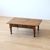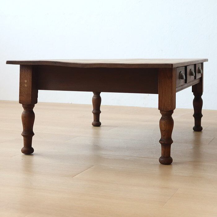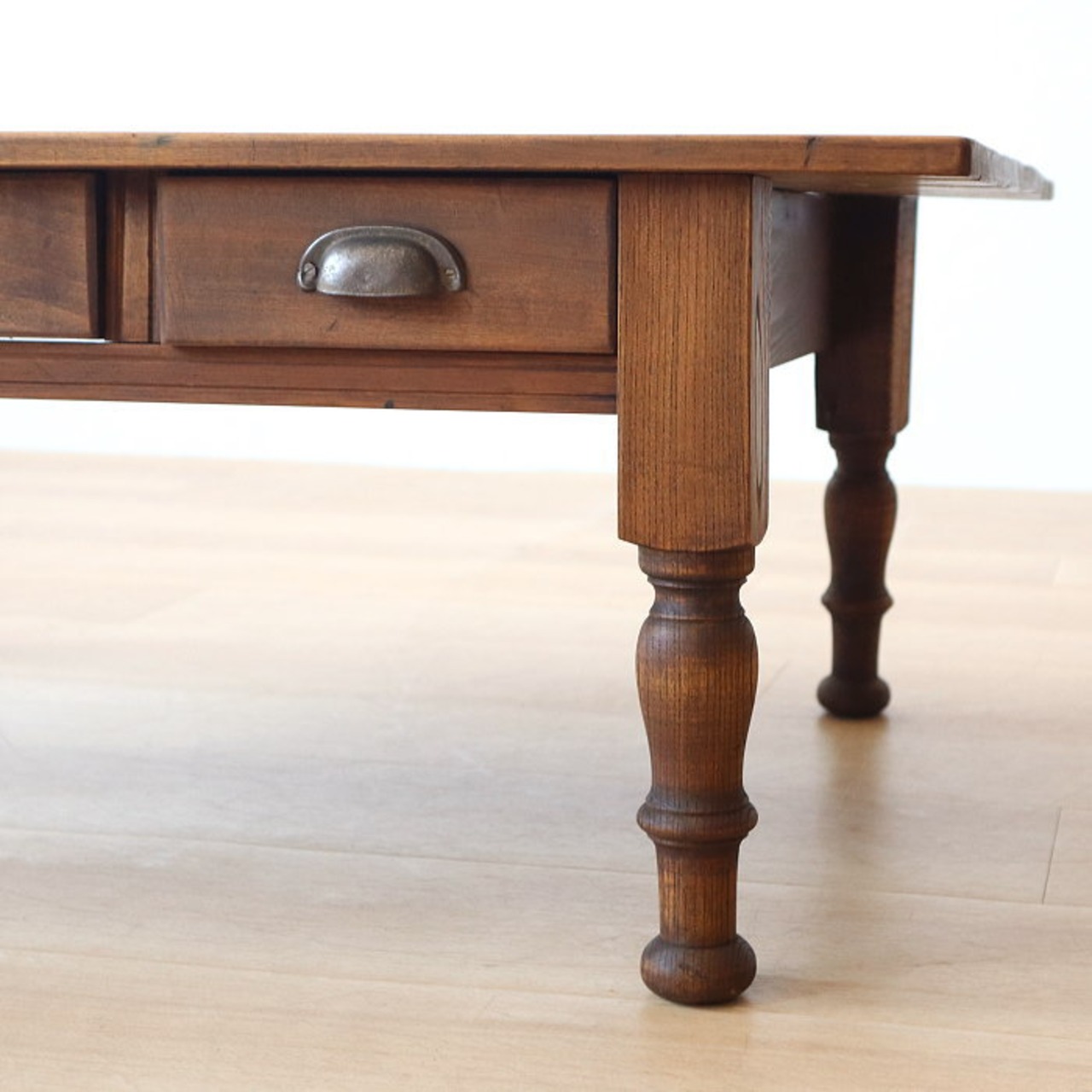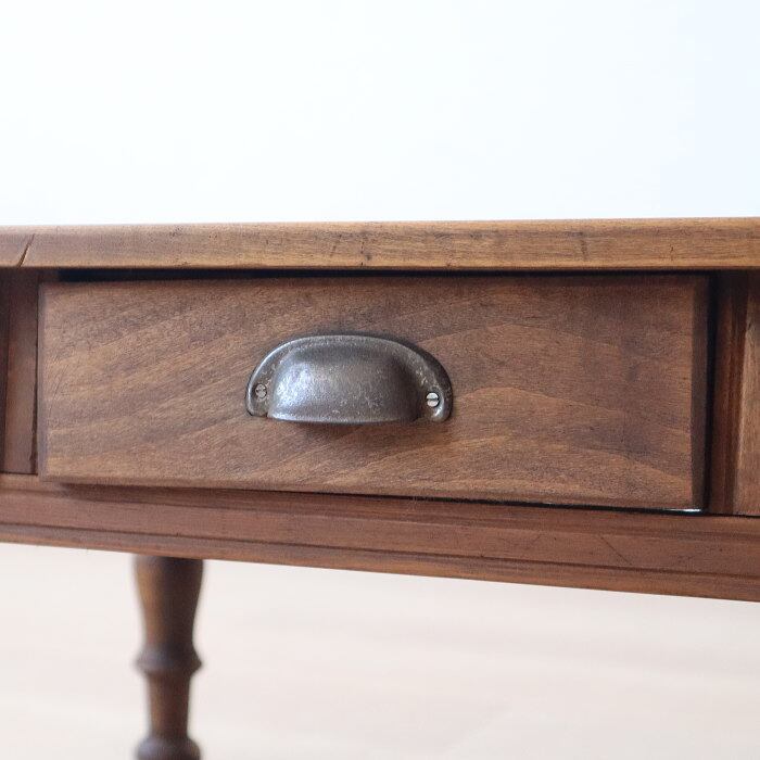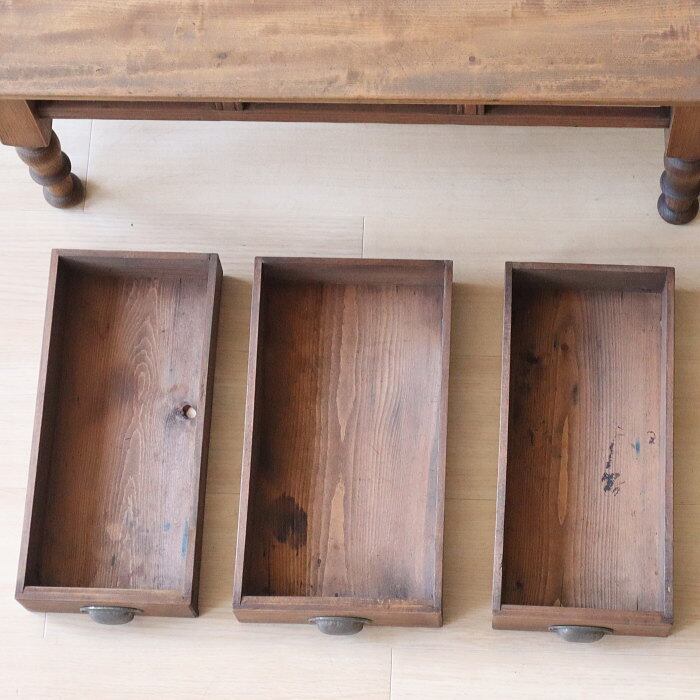 アンティーク ロクロ脚 引き出し3杯 無垢材 文机 古家具 トチ