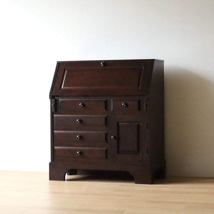 北海道民芸家具のライティングビューローです。長く使われてきたからこそ、美しい。今も使われているからこそ、美しい。日本の民芸運動の「用の美」を求める心と、北海道の豊かな自然が出会って生まれた「北海道民芸家具」です。補修、メンテナンスをしてありますので届いてすぐにお使いいただけます。店舗什器やオブジェにいかがでしょうか。あなたのライフスタイルに合わせて素敵にお使いください。