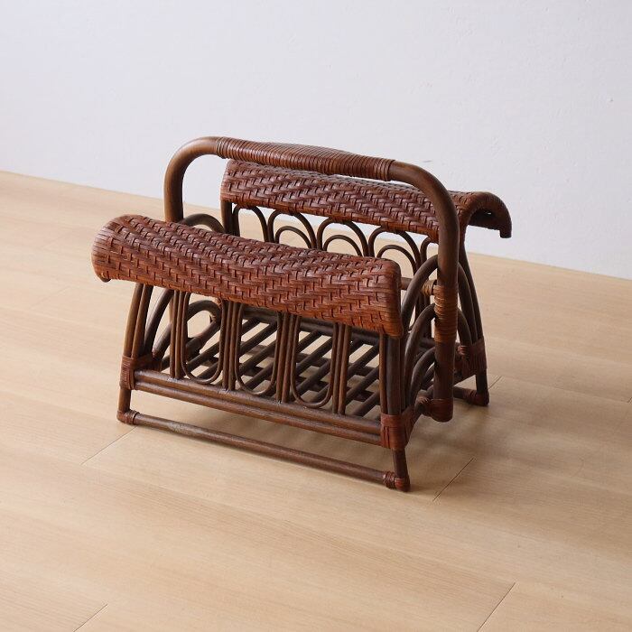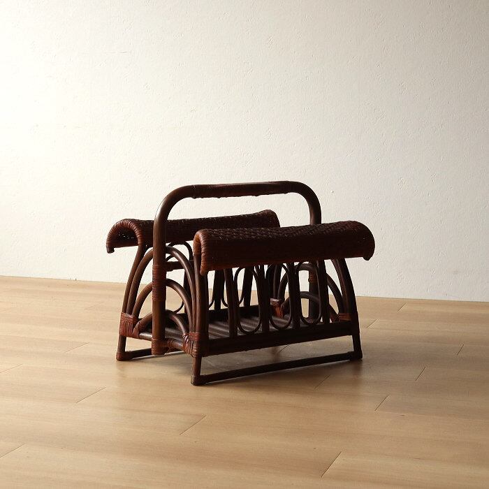 アンティーク ラタン&レザー スリッパラック マガジンラック 本革 古家具