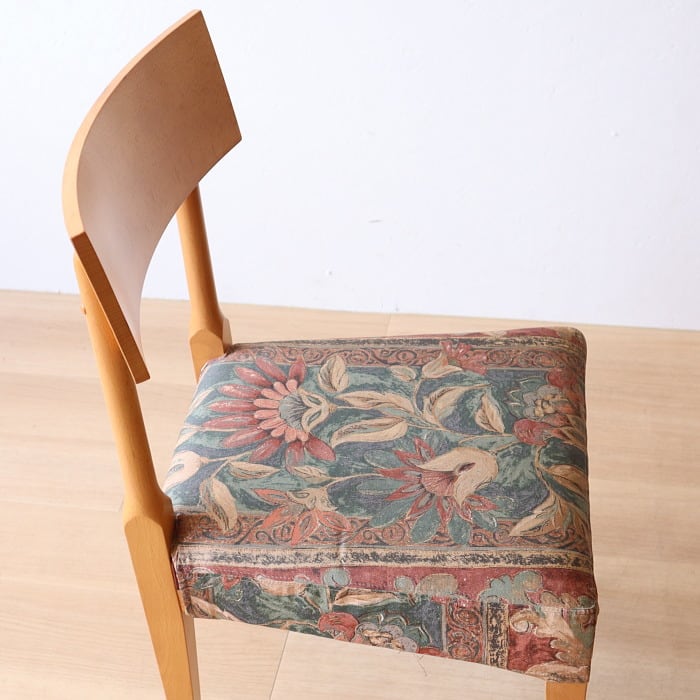 ビーチ材のカバーリングチェアです。飛騨産業が某家具店用に作っていたイスでフレームは「森のことば」と同仕様で張地は穂高のオリジナル張地です。座面はカバーリング仕様ですのでご自宅で簡単に洗濯ができます。補修、メンテナンスしてあるのですぐに使用できます。店舗什器やオブジェなどにもいかがでしょうか。あなたのライフスタイルに合わせて素敵にお使いください。