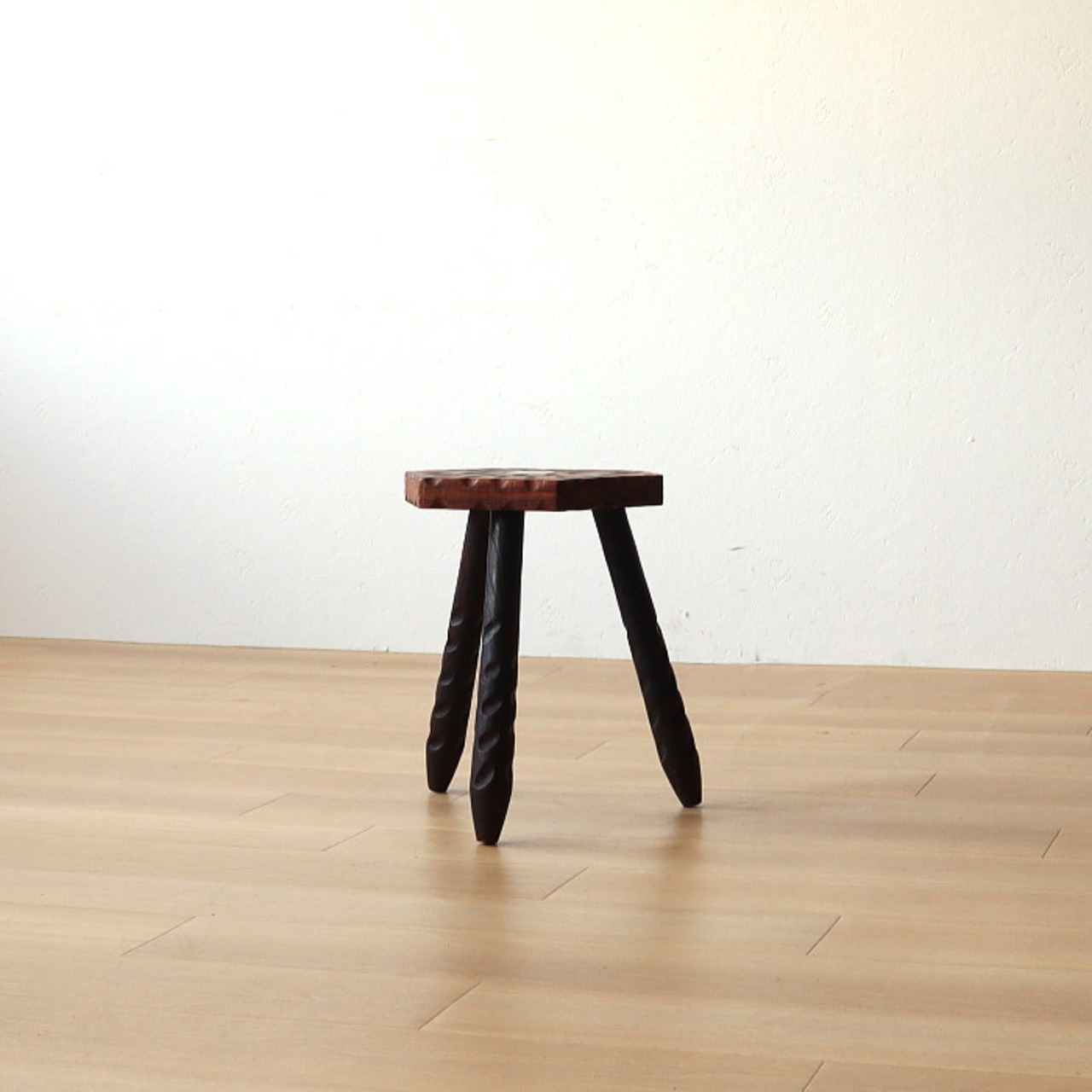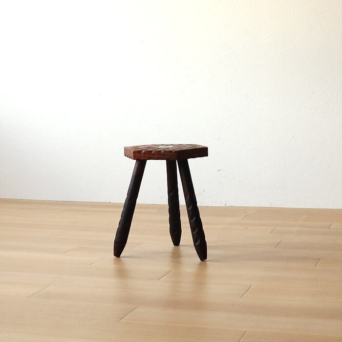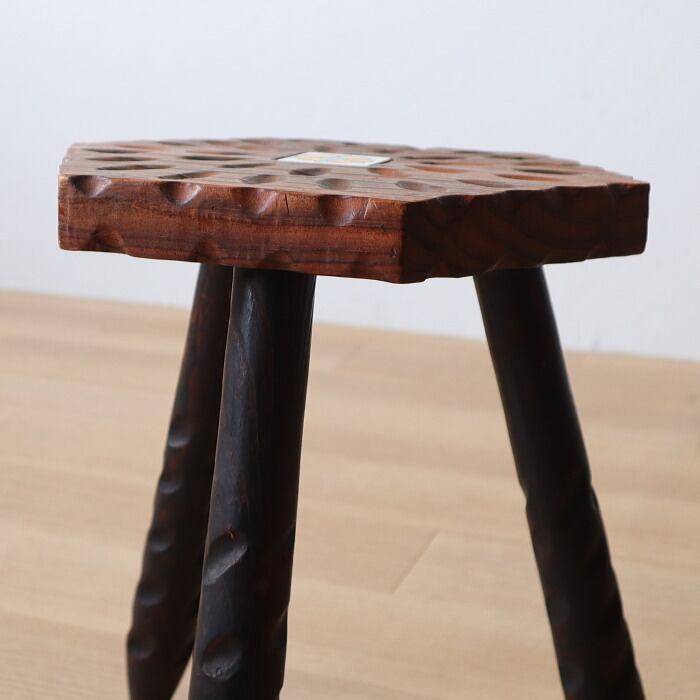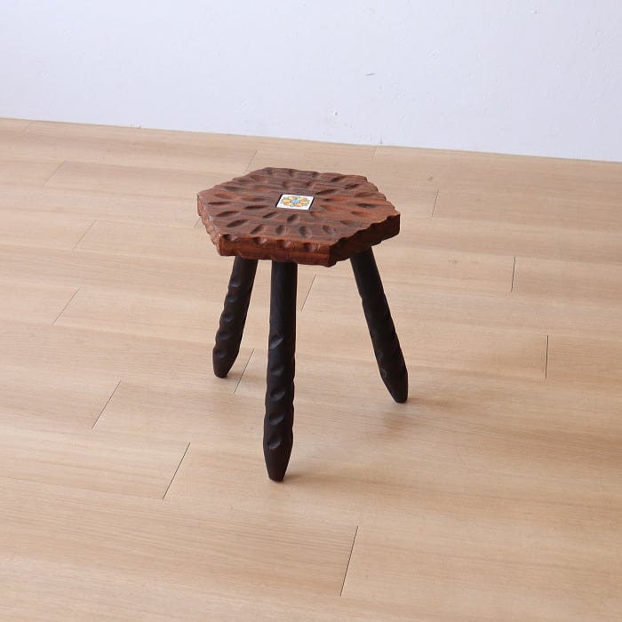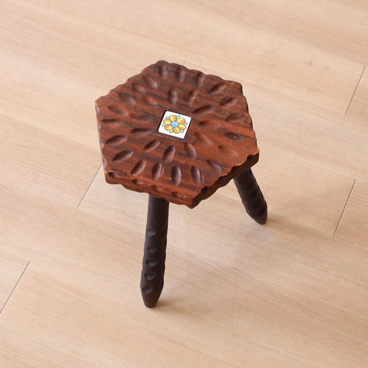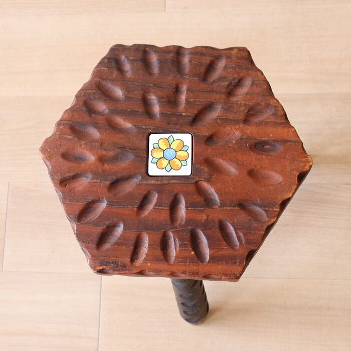 ヴィンテージ 木製 無垢材 六角 スツール 古家具 スペイン製
