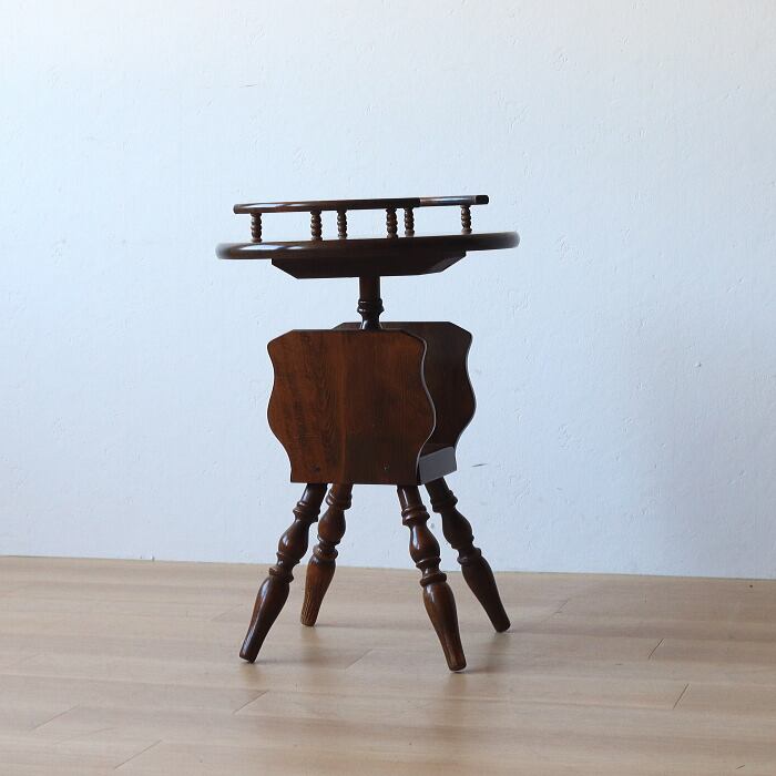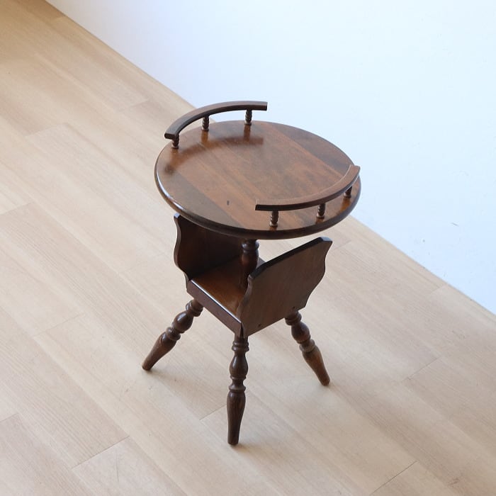 飛騨産業(キツツキ)のティーテーブルです。マガジンラックがついておりオブジェとしても可愛らしいテーブルです材質はブナ材だと思われます。サイドテーブルや花台、店舗什器などにもいかがでしょうか。あなたのライフスタイルに合わせて素敵にお使いください。