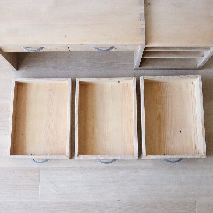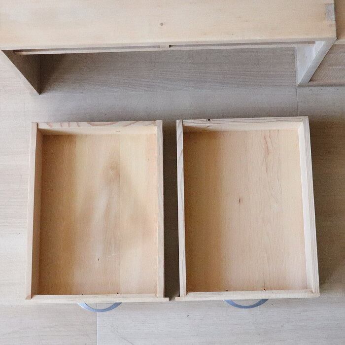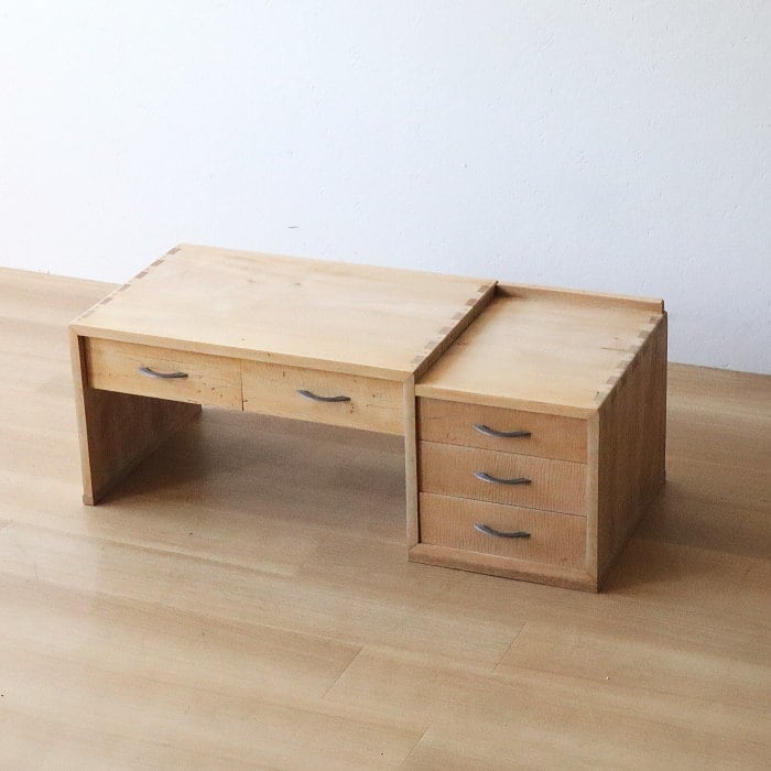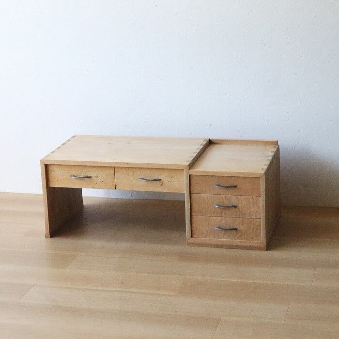 アンティークの無塗装引き出し付き文机です。引き出しの出し入れは調整してあり、補修修復しています。届いてすぐ安心してお使いいただけます。材質は天板、本体はカエデ材、他は色々な木材を使用しています。センターテーブルやオブジェなどにも使えそうですね。あなたのライフスタイルに合わせて素敵にお使いください。