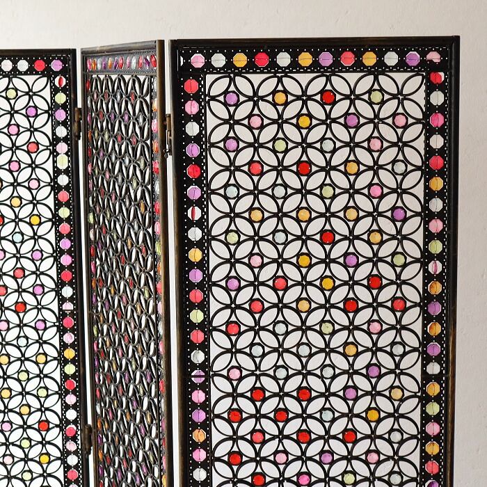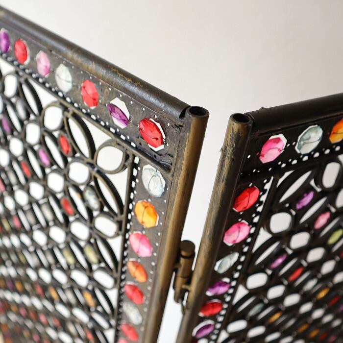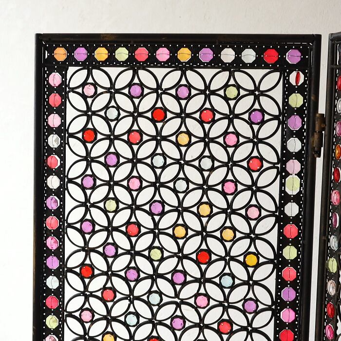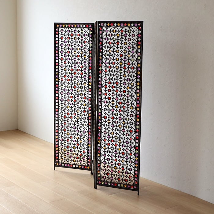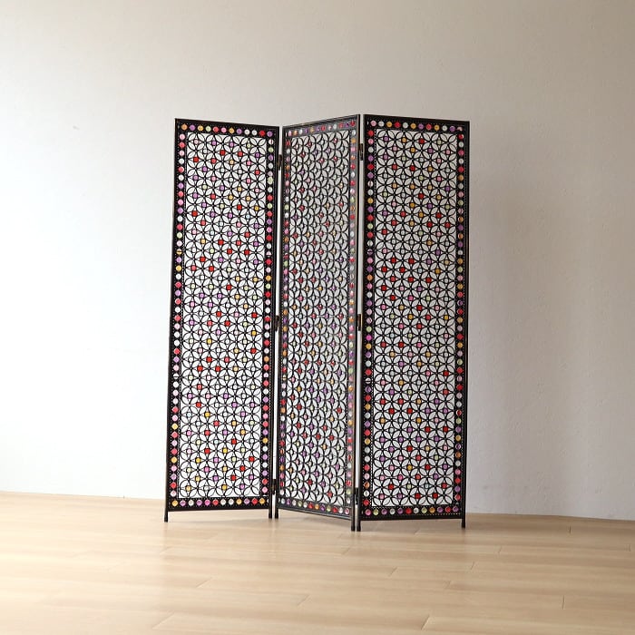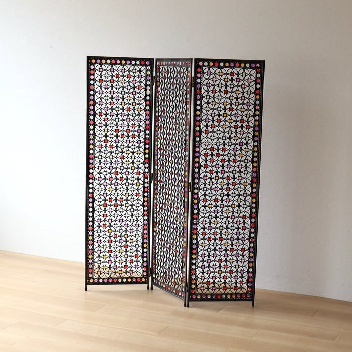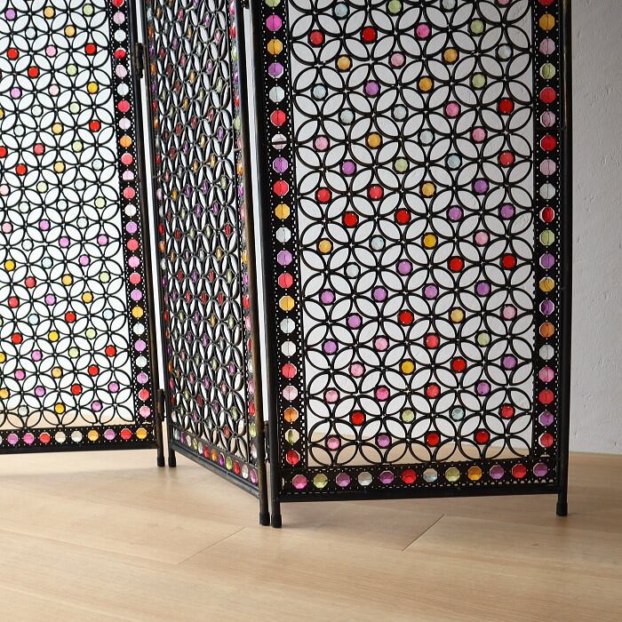 パーテーション 間仕切り 3連 アクリル ビーズ アイアン 折り畳み