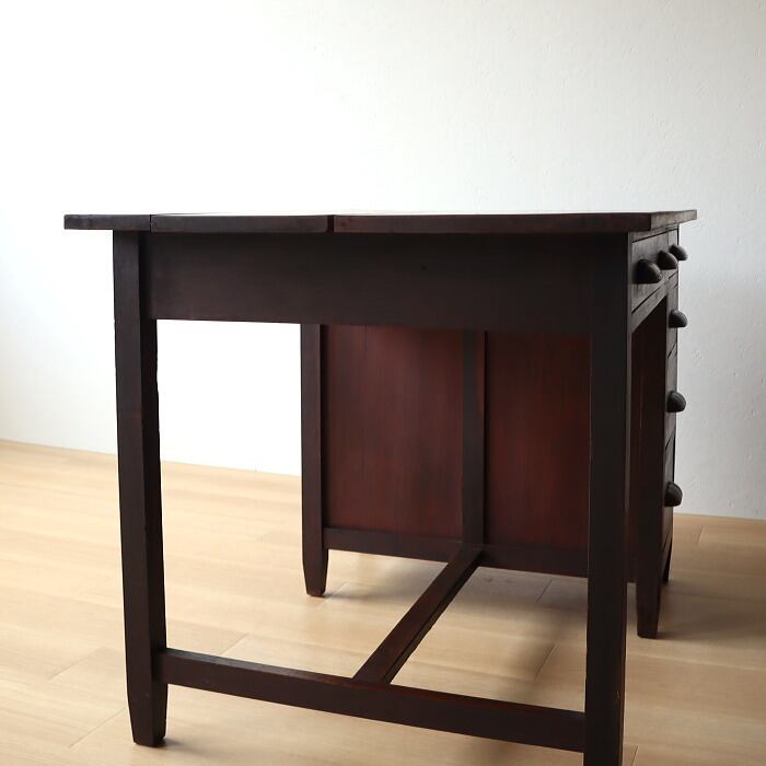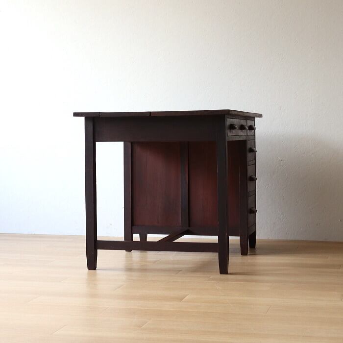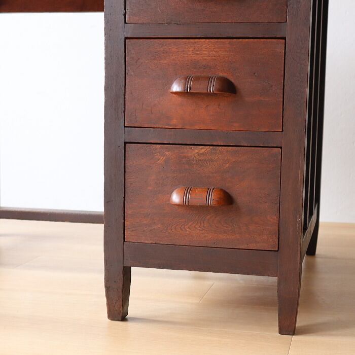 アンティーク 木製 片袖机 レトロ 無垢材 デスク 古家具