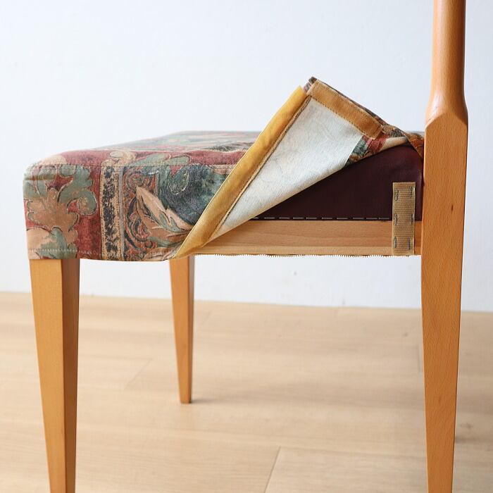 ビーチ材のカバーリングチェアです。飛騨産業が某家具店用に作っていたイスでフレームは「森のことば」と同仕様で張地は穂高のオリジナル張地です。座面はカバーリング仕様ですのでご自宅で簡単に洗濯ができます。補修、メンテナンスしてあるのですぐに使用できます。店舗什器やオブジェなどにもいかがでしょうか。あなたのライフスタイルに合わせて素敵にお使いください。