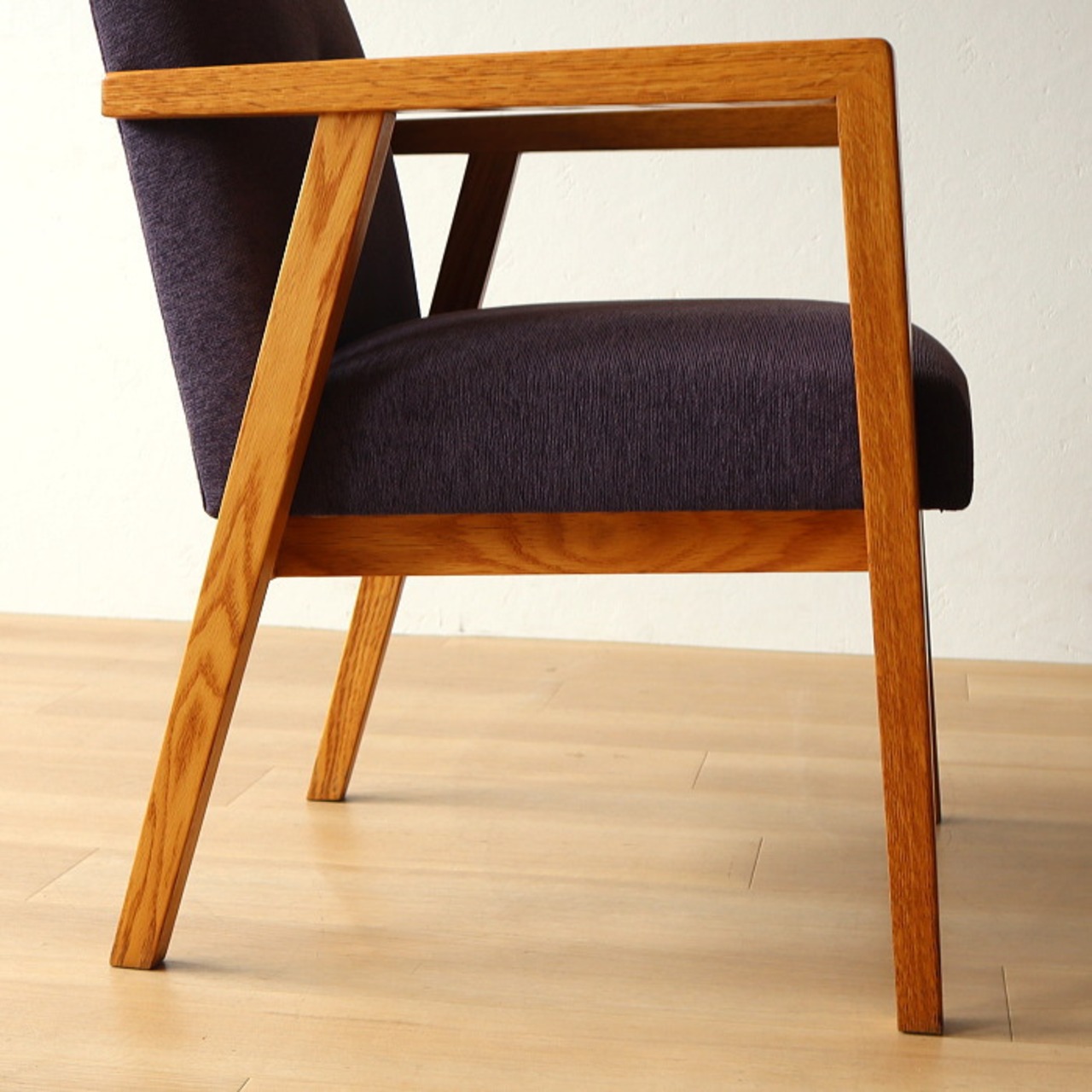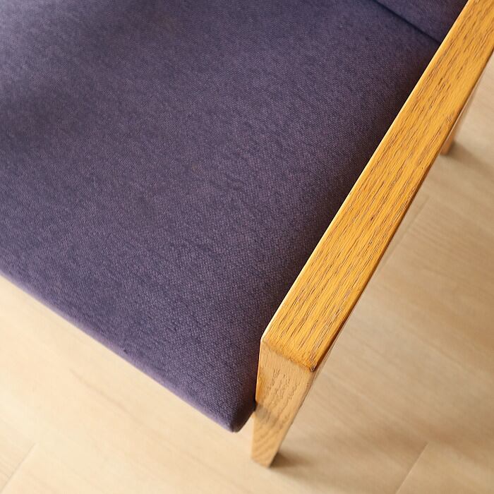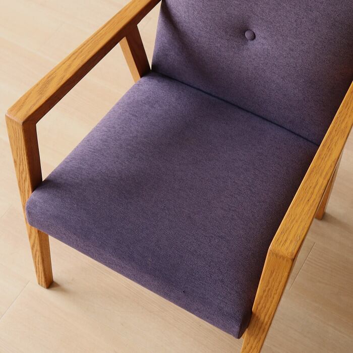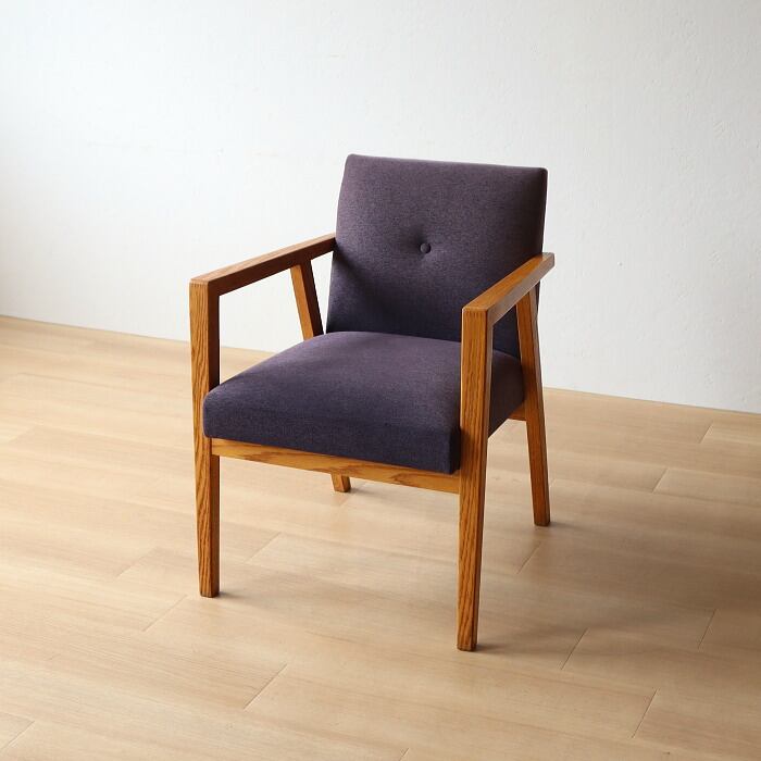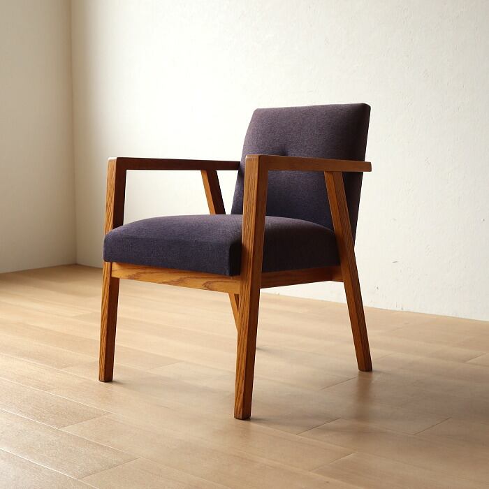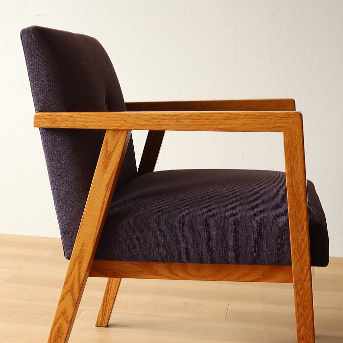 その名の通り、大きくゆったりとしたデザインで、長時間座っても疲れない座り心地のアームチェア。座面のクッションは、5本のSバネを綿の太い糸でつなぎ合わせることで大きなカーブを描き、ゆっくりとした沈み込みを感じることができます。表記サイズはSH430mmですが、座ると50mm程度沈み込むため、体感ではSH380mm程度となります。どこか昔見たような椅子でありながら、北欧的ではない無骨さもある椅子です。