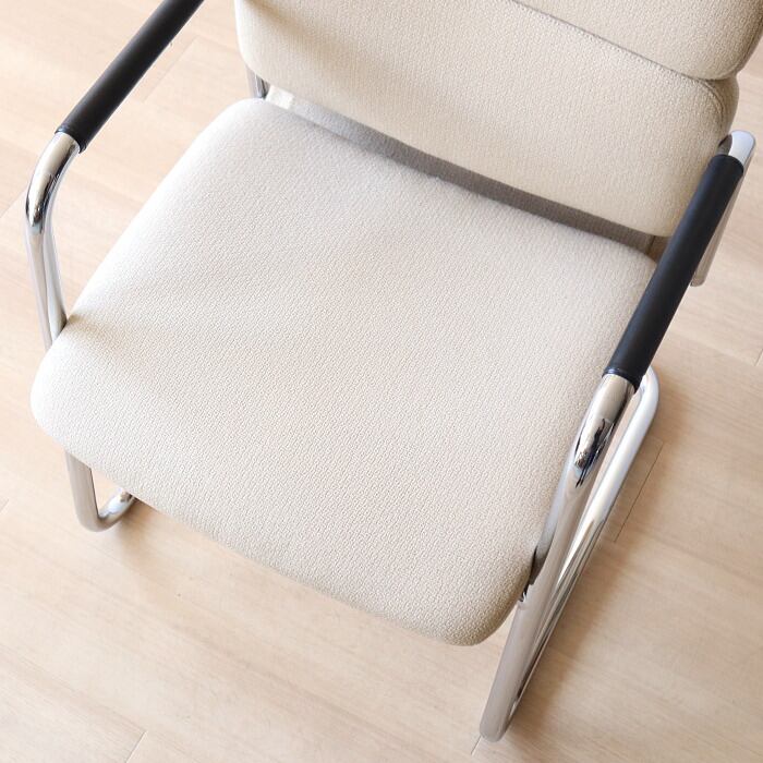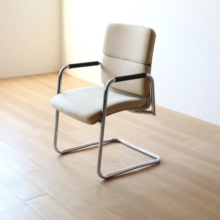 天童木工のカンチレバーアームチェアです。おそらくコントラクト家具用に作られたイスです。フレームデザインが特徴的で座り心地もグットです。補修、メンテナンスしてあるので届いてすぐに使用できます。店舗什器やオブジェなどにもいかがでしょうか。あなたのライフスタイルに合わせて素敵にお使いください。