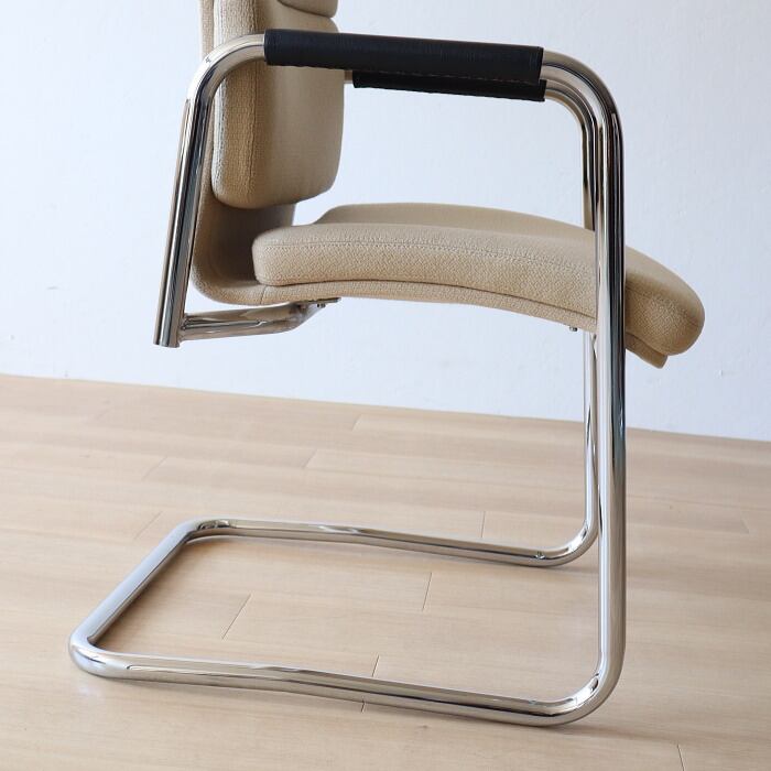 天童木工のカンチレバーアームチェアです。おそらくコントラクト家具用に作られたイスです。フレームデザインが特徴的で座り心地もグットです。補修、メンテナンスしてあるので届いてすぐに使用できます。店舗什器やオブジェなどにもいかがでしょうか。あなたのライフスタイルに合わせて素敵にお使いください。