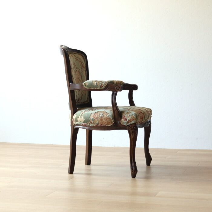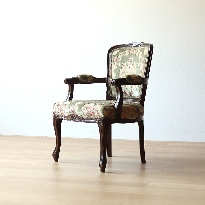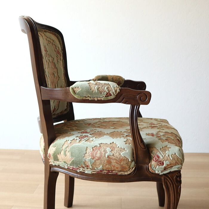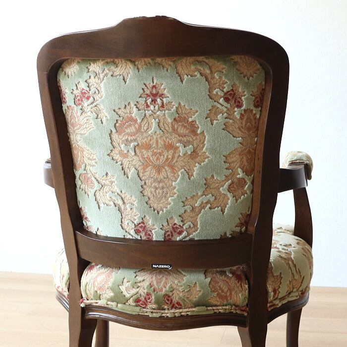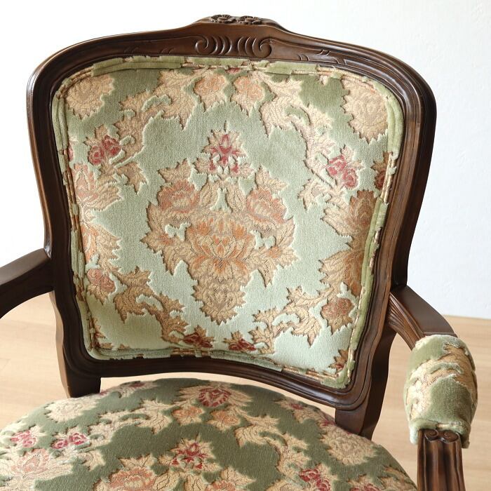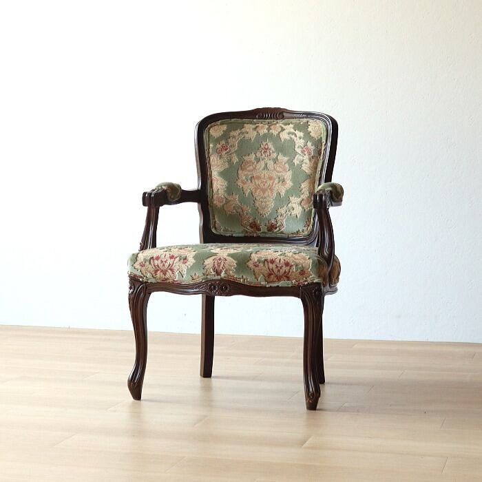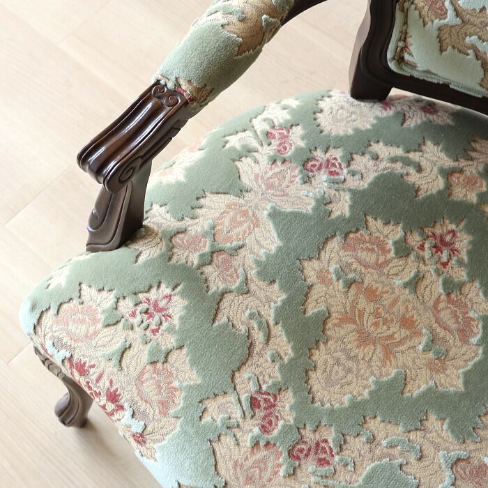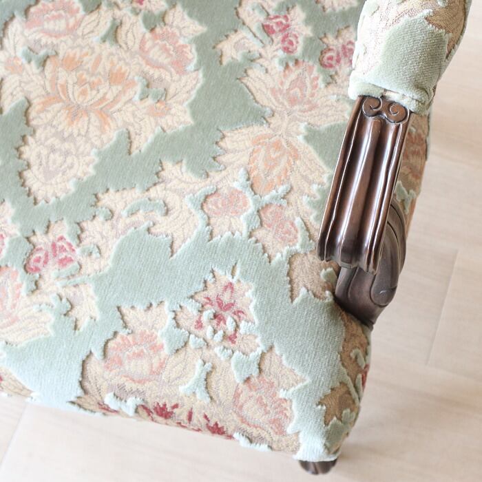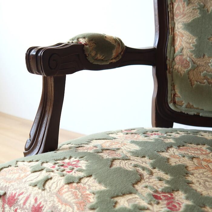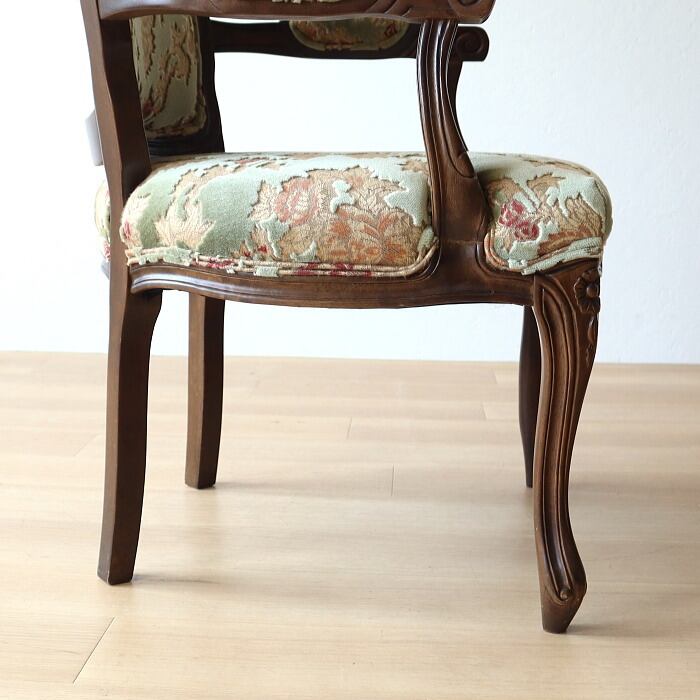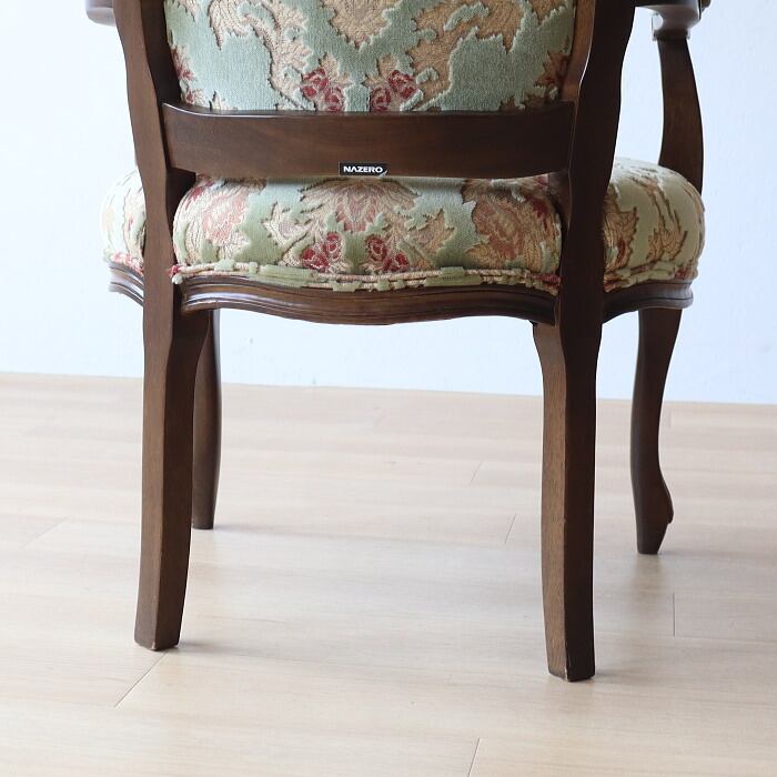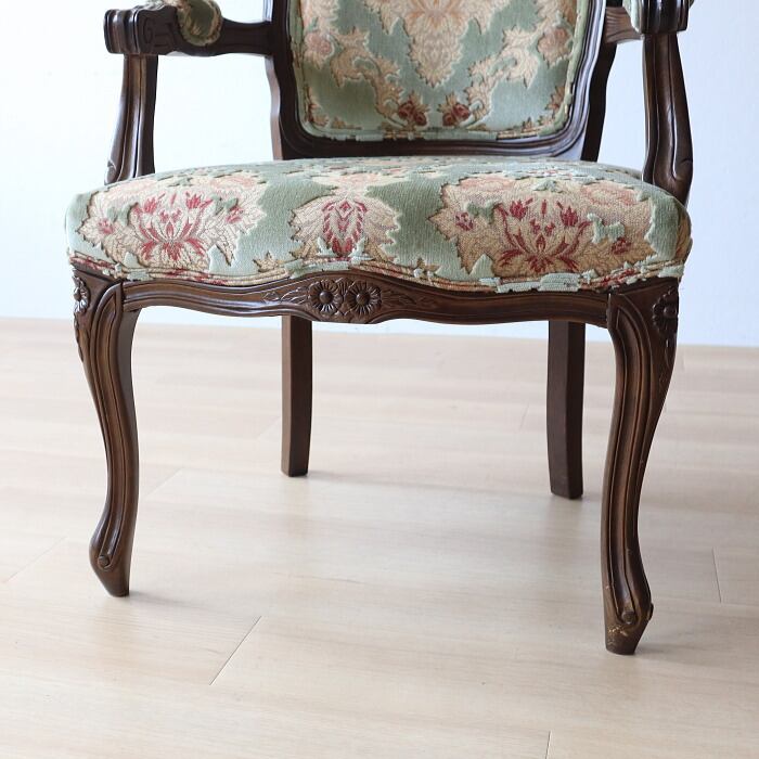 金華山 アームチェア グリーン 猫脚 彫刻 張替済み