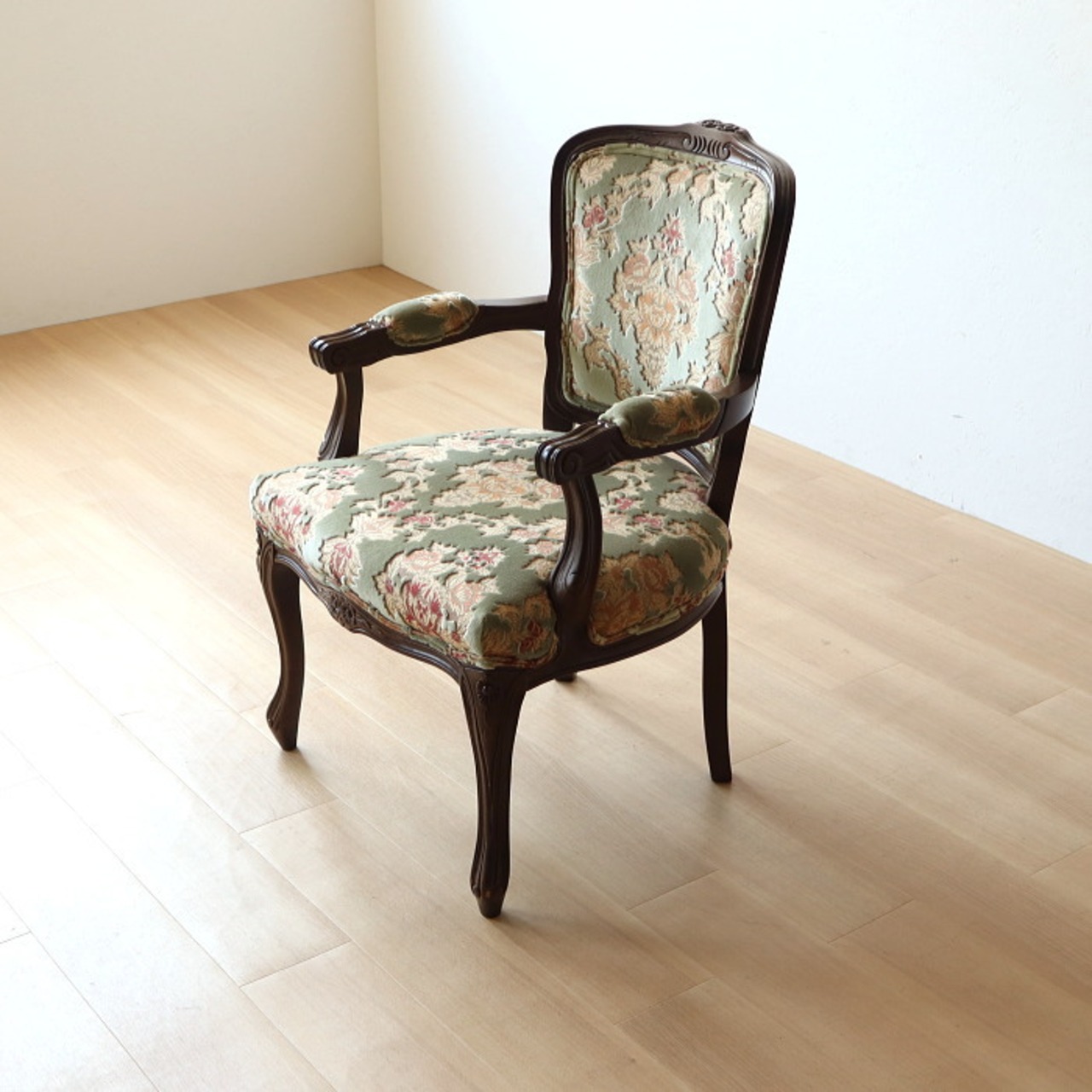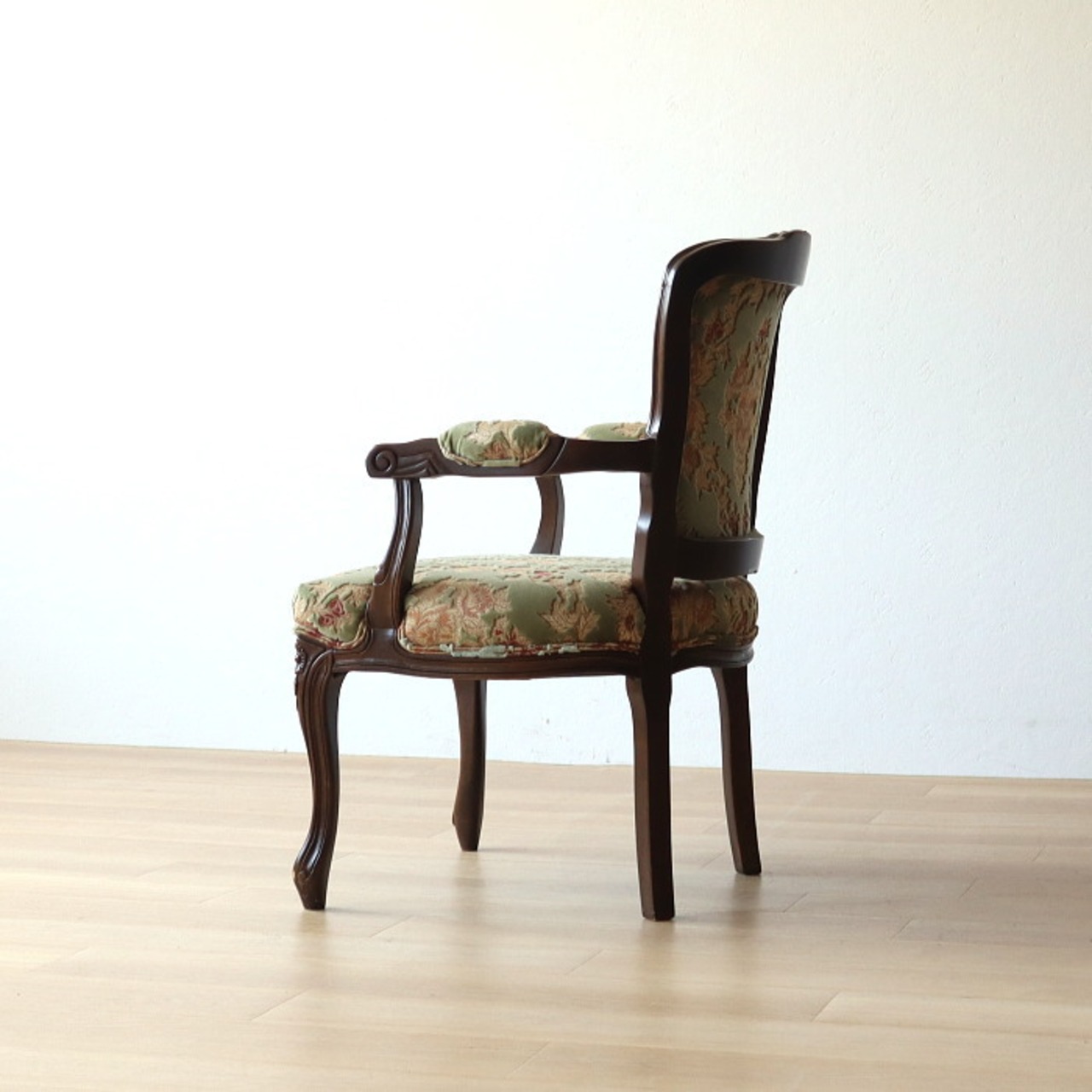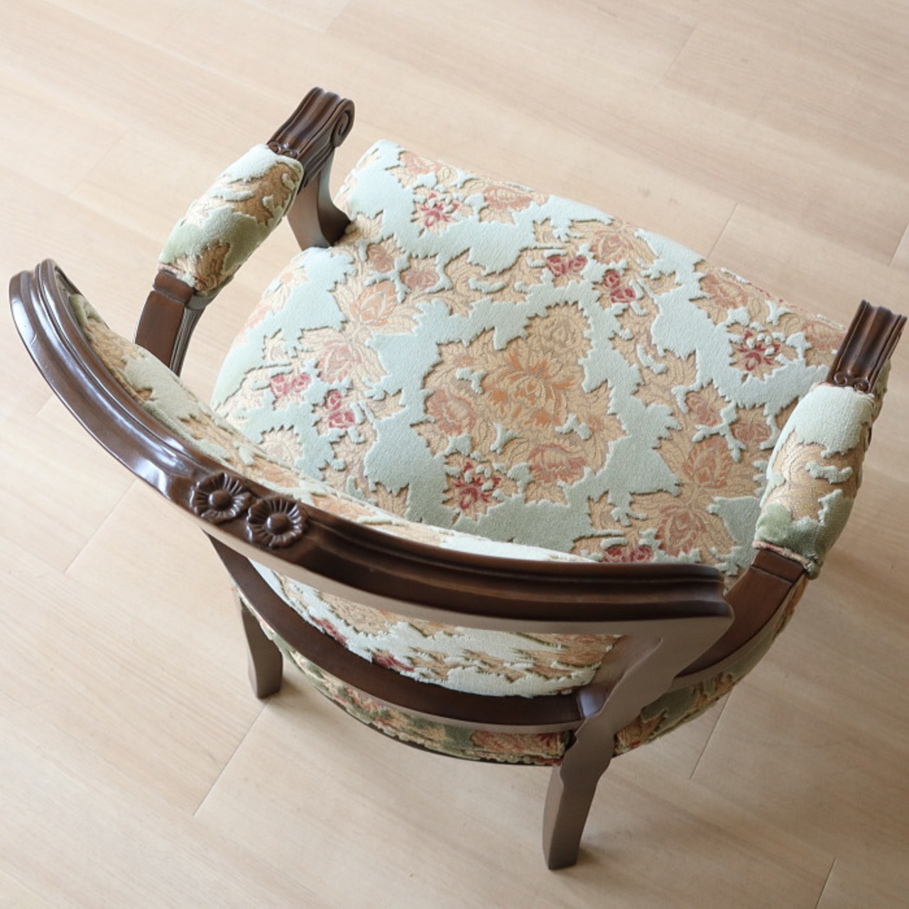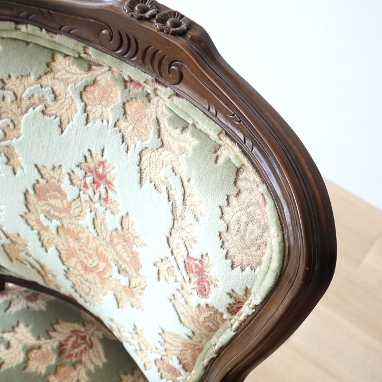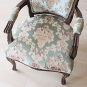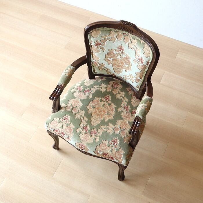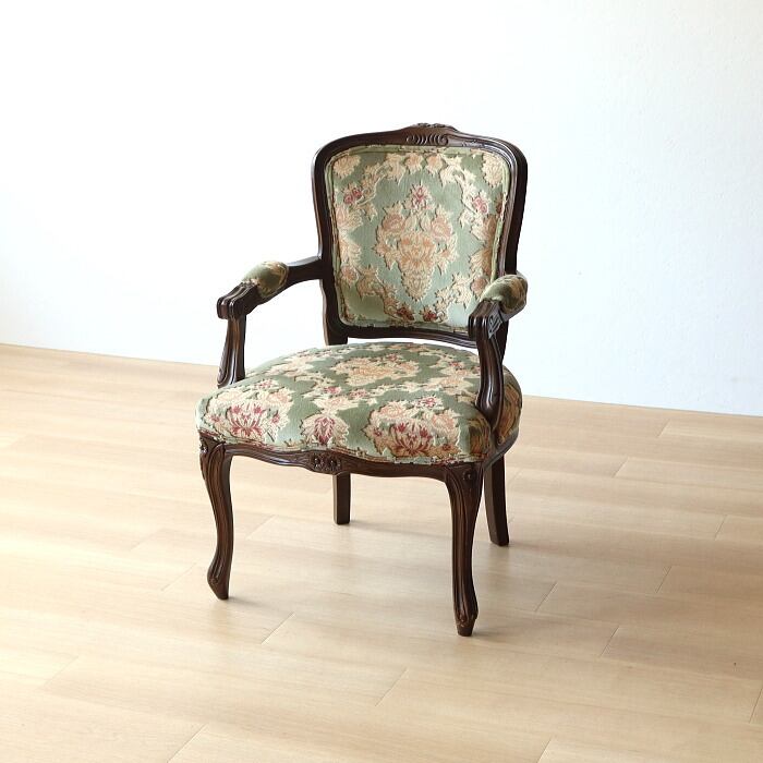金華山 アームチェア グリーン 猫脚 彫刻 張替済み