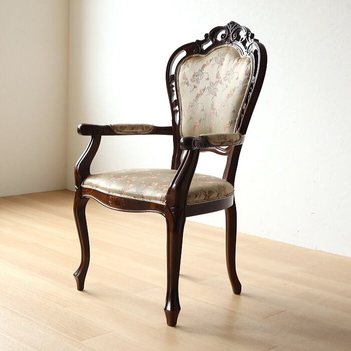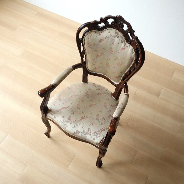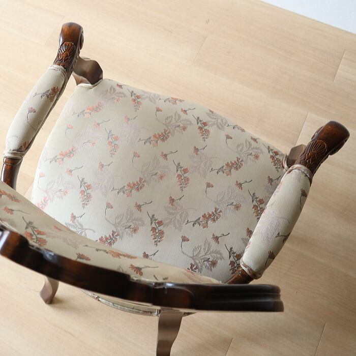 ヴィンテージ クラシカル アームチェア ベージュ色 猫脚 彫刻