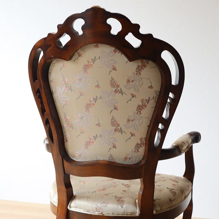 オリバーのクラシカルアームチェアです。フレームデザインが特徴的で座り心地もグットです。背、座ともクリーニングしてあるので届いてすぐに使用できます。店舗什器やオブジェなどにもいかがでしょうか。あなたのライフスタイルに合わせて素敵にお使いください。