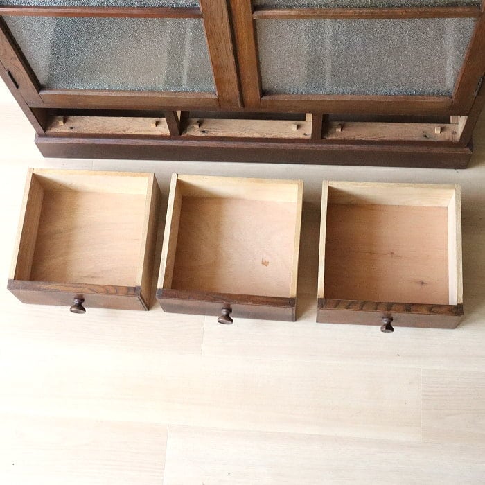 アンティーク ダイアガラス 両開き棚 収納棚 ナラ材 古家具 レトロ 書棚