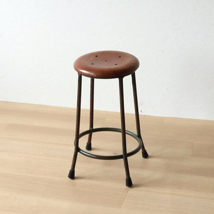 ヴィンテージ アイアンスツール⑦ 無垢材 鉄脚 古家具 レトロ