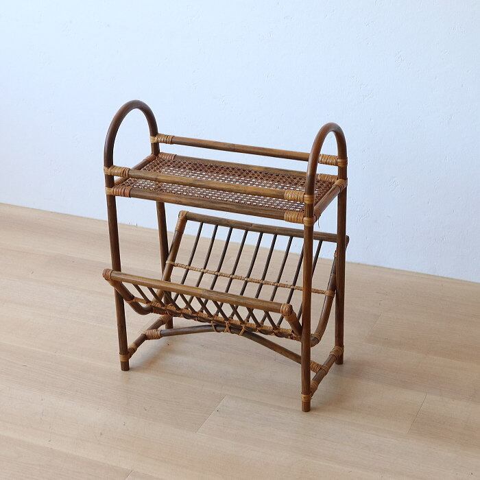 アンティーク マガジンラック 籐 ラタン 昭和レトロ シャビー