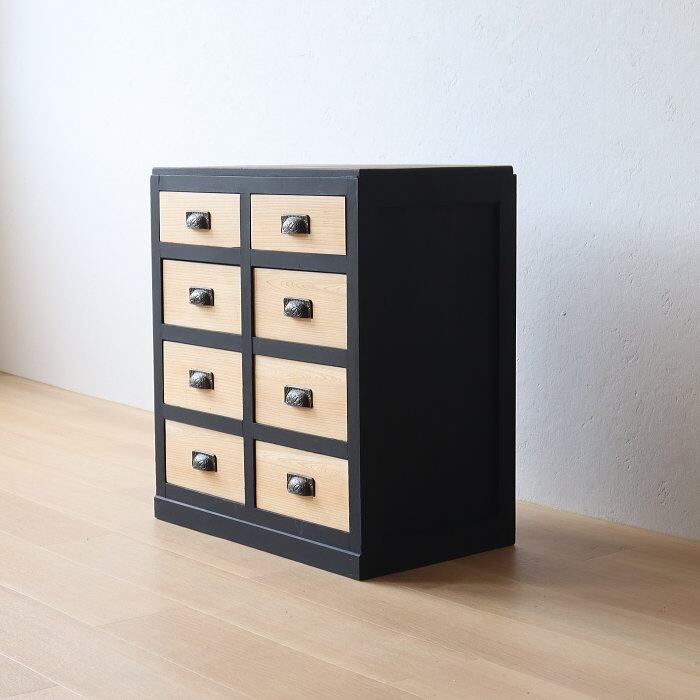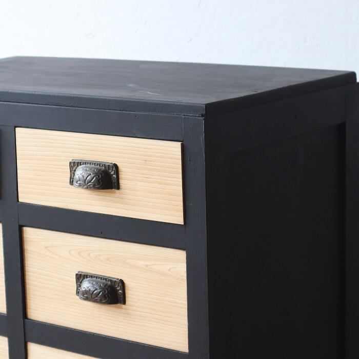 アンティーク 引出し8杯 チェスト 古家具 黒色 木製 ナチュラル