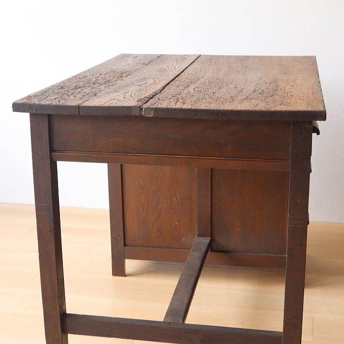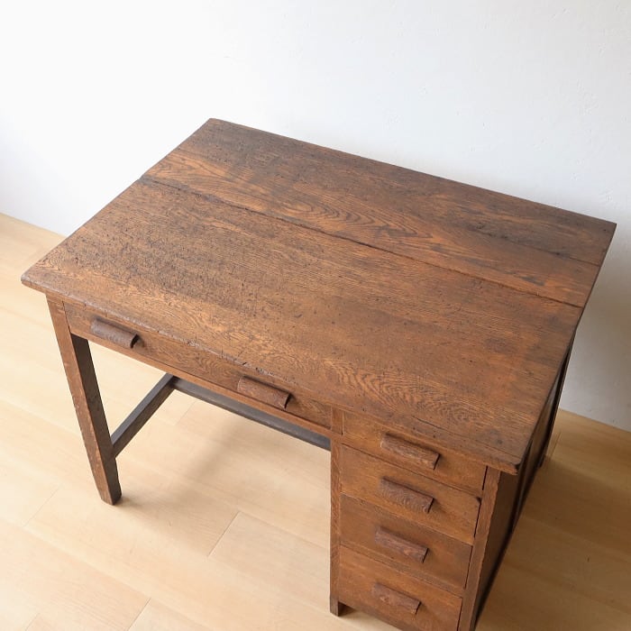アンティーク ナラ材 片袖机 レトロ 無垢材 デスク 古家具